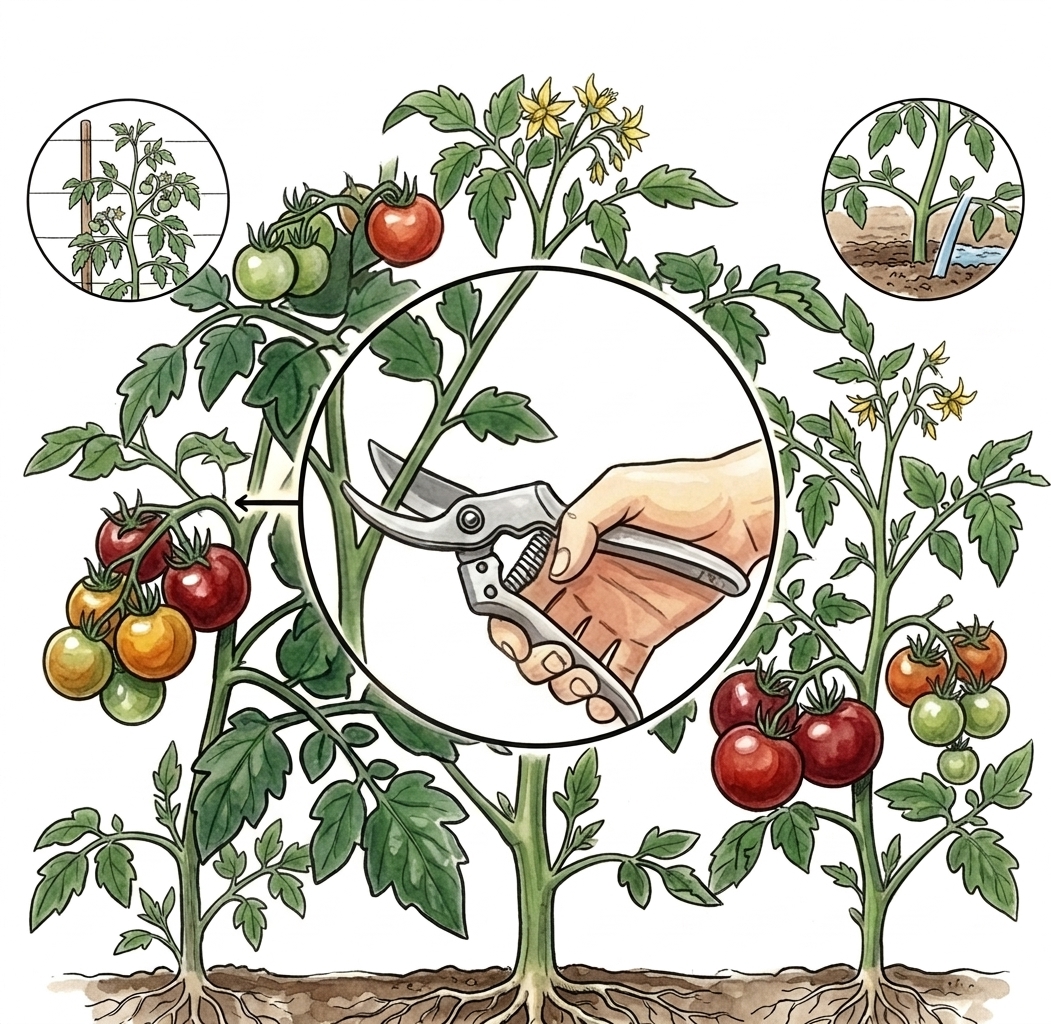 • Le piège classique : trop d'azote = beaucoup de feuilles, peu de fruits. Si votre plant est très vert et feuillu mais ne produit rien, arrêtez les apports azotés.