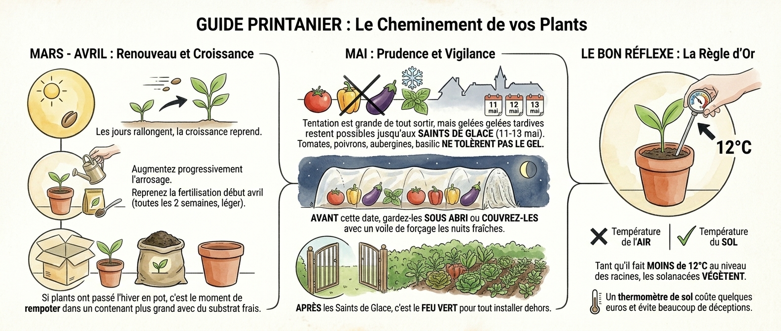La nature redémarre, vos plants aussi. C'est la saison où tout se met en place.